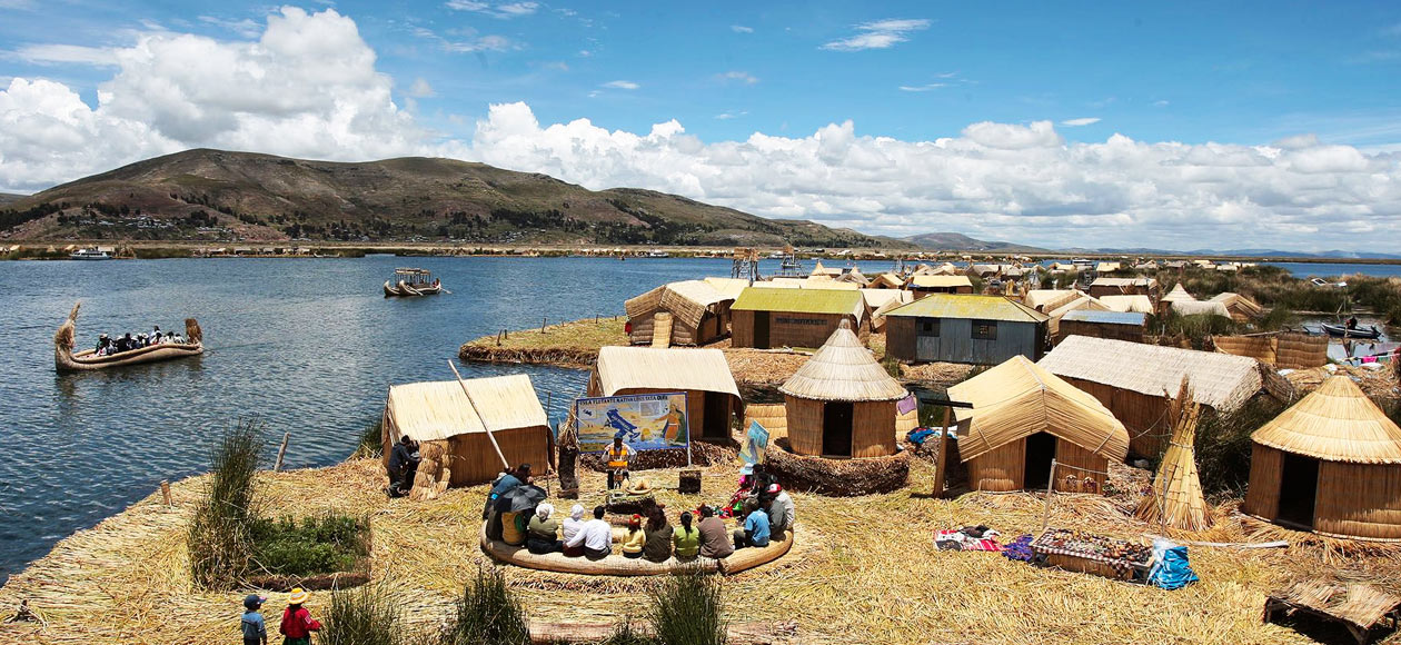We start off our boat excursion on Lake Titicaca by visiting “The Uros Floating Islands”, The Uros people harvest the reeds in the shallow areas of the lake, bundle them together tightly and build floating island platforms complete with reed houses and canoes, creating in this way their own little world. On the islands we will learn with our local guide about their lifestyle and customs. After strolling around the floating Islands, we continue our journey towards “Taquile Island” (2 hour ride approx.), a traditional Quechua speaking community, full of ancient agricultural terraces.